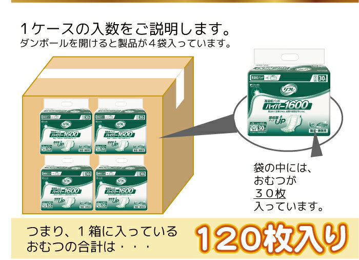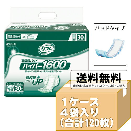 リフレ(Livedo)高吸収パッド ハイパー1600 ケース(合計120枚入[30枚×4袋])【大人用オムツ 大人用 紙おむつ 介護用紙オムツ 介護用品 おむつ 大人用おむつ 尿とりパッド 失禁用品 パッドタイプ 尿とりパット 尿取りパッド】
