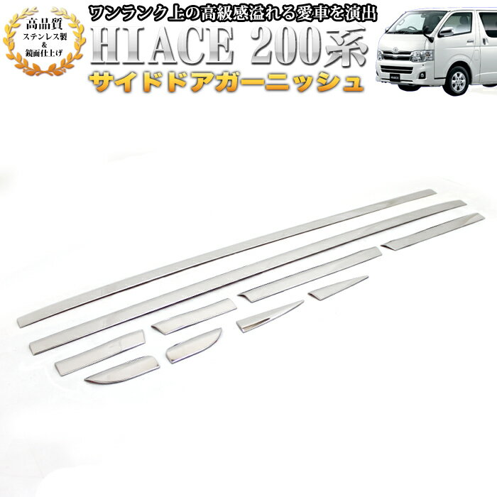 ハイエース レジアスエース 200系 1型 2型 3型 4型 標準 ワイド 全年式 対応 サイドドアガーニッシュ サビに強いステンレス製 鏡面 仕上げ 10P FJ4418