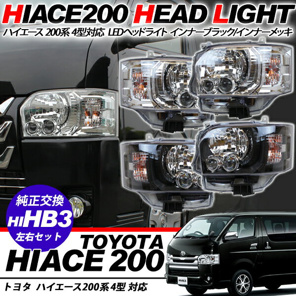 ハイエース200系 レジアスエース DX/SGL 4型 LEDヘッドライト プロジェクター ヘッドライト H4 レジアス 標準/ワイドボディ対応 インナーブラック/インナーメッキ クリスタル仕様 ヘッドランプ 純正交換
