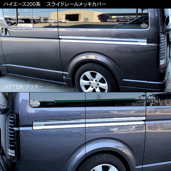 ハイエース 200系 4型 標準用 メッキパーツ 2点セット スライドレールカバー メッキドアノブカバー商品説明 【適合車種】200系ハイエース/レジアスエース200系 標準/ワイドボディ(KDH200/TRH200系) 全年式対応 H16〜(1型/2型/3型/4型) ※DX/スーパーGL対応 ※両側スライドドア車のみ対応 ・ハイエース200系専用のサイドメッキパーツ豪華2点セット。