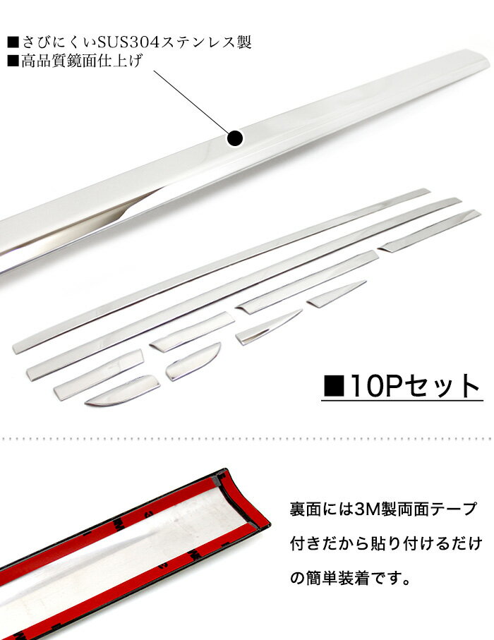 ドレスアップ効果抜群のアイテムです! ■適合:ハイエース/レジアスエース200系 KDH200/TRH200系 標準/ワイドボディ 1型/2型/3型/4型 全年式対応 ※DX/スーパーGL対応 ■サビに強いSUS304ステンレス製 ■表面パフ仕上げで煌めき抜群の鏡面仕上げ ■3D立体プレス成型品 ■両面テープ装着済み ■セット内容:サイドドアガーニッシュ 10P 発送詳細 ■宅配便(佐川急便・西濃運輸・ゆうパック) 本州・四国・九州への宅配便送料無料 ※送料無料の場合でも配達場所により別途中継料が掛かる場合が御座います。
