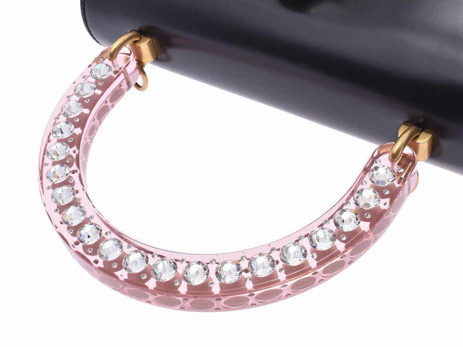 カーフとバンブー(竹)、ラインストーン付プラハンドルと異なる素材が見事に融合したデザインはハイブランドならでは! ショルダーストラップは2種類あり、より楽しめます。